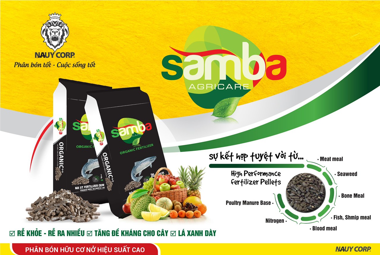 PHÂN BÓN HỮU CƠ NỞ HIỆU SUẤT CAO NA UY SAMBA là loại phân bón hiệu suất cao được thiết kế trên một công thức độc đáo bổ sung đầy đủ các dưỡng chất thiết yếu cho cây đất, cây trồng. Các chủng men vi sinh, hàm lượng hữu cơ cao lên men hoàn toàn, đạm, lân, kali, acid humic, fulvic cùng các amino acid và các trung vi lượng Ma giê, Bo, giúp giữ ẩm, tham gia cải tạo cấu trúc và bề mặt giúp đất tơi xốp, tạo môi trường tốt cho vi sinh vật có lợi cho đất phát triển, hạn chế rửa trôi phân, tăng khả năng hấp thụ dinh dưỡng, nâng cao hiệu quả sử dụng phân bón. Tăng năng suất và chất lượng nông sản.